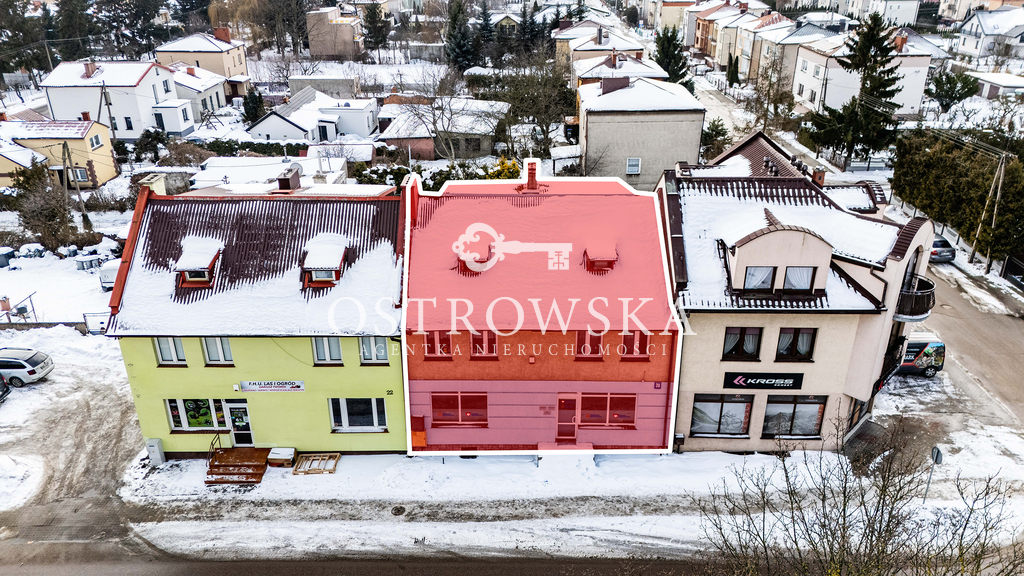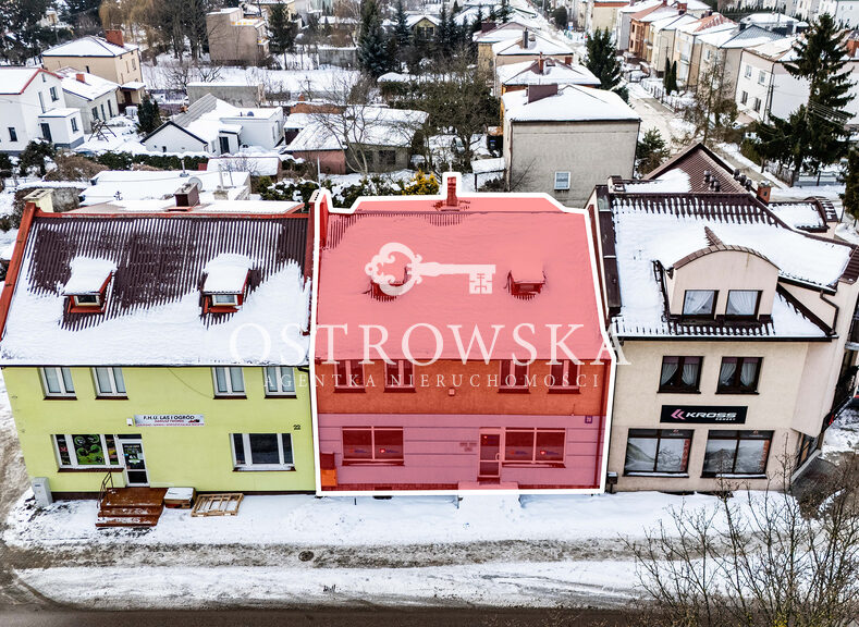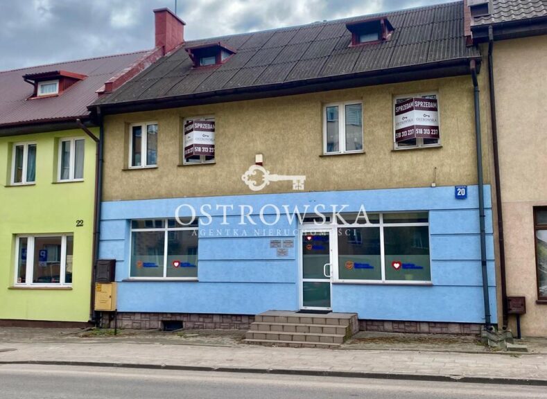 Przedmiotem sprzedaży jest dwukondygnacyjny budynek usługowo-mieszkalny z poddaszem użytkowym i piwnicą o łącznej powierzchni użytkowej ok. 135 m2, wyróżniający się podziałem na część usługową oraz mieszkalną.