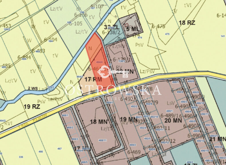 - RZ – tereny rolnicze i zieleni naturalnej (wzdłuż rzeki)