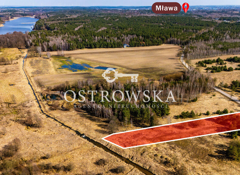 ✔ rzeka Mławka wzdłuż działki – naturalny klimat i prywatność