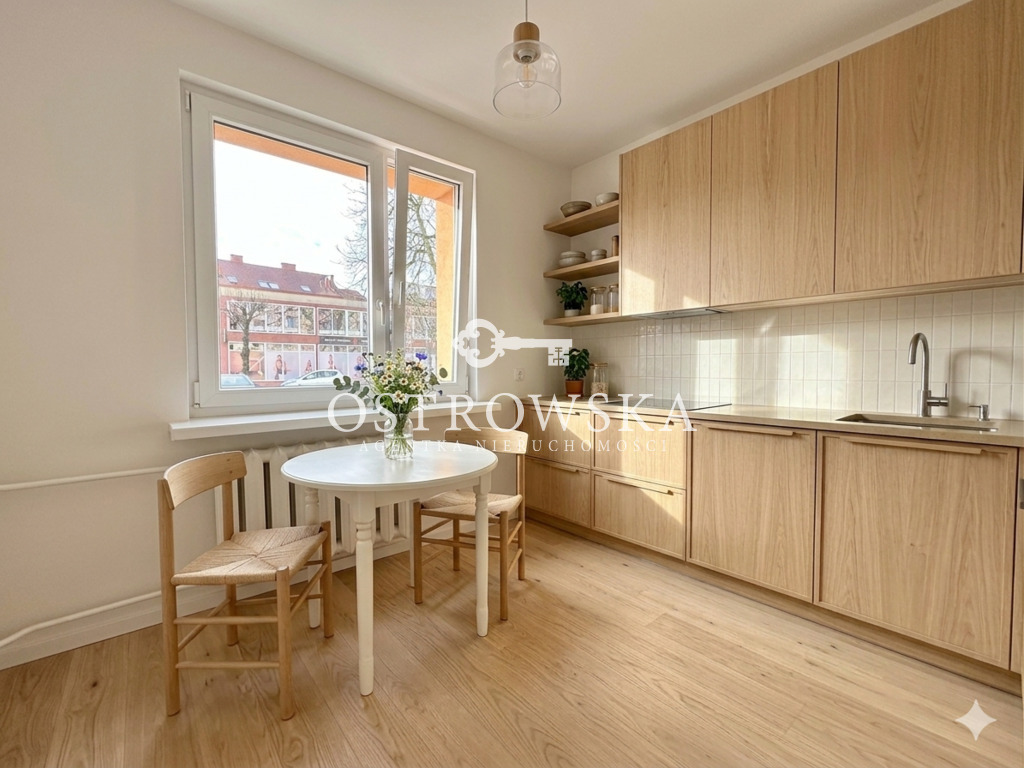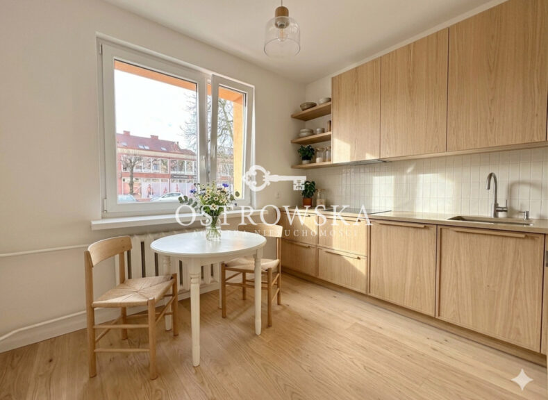 Mieszkanie jest dwustronne (ekspozycja okien na wschód–zachód), co zapewnia naturalne światło przez większą część dnia. Lokal jest kompaktowy, ale ustawny. Oddzielna kuchnia daje poczucie wyraźnego podziału przestrzeni.