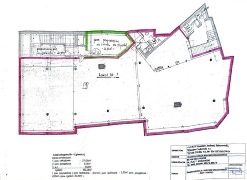 – lokal nr 1 o powierzchni 390,24 m² cena 1 030 000 zł netto + 23% VAT