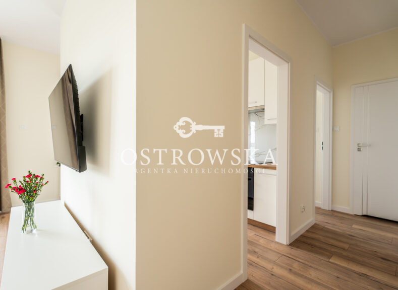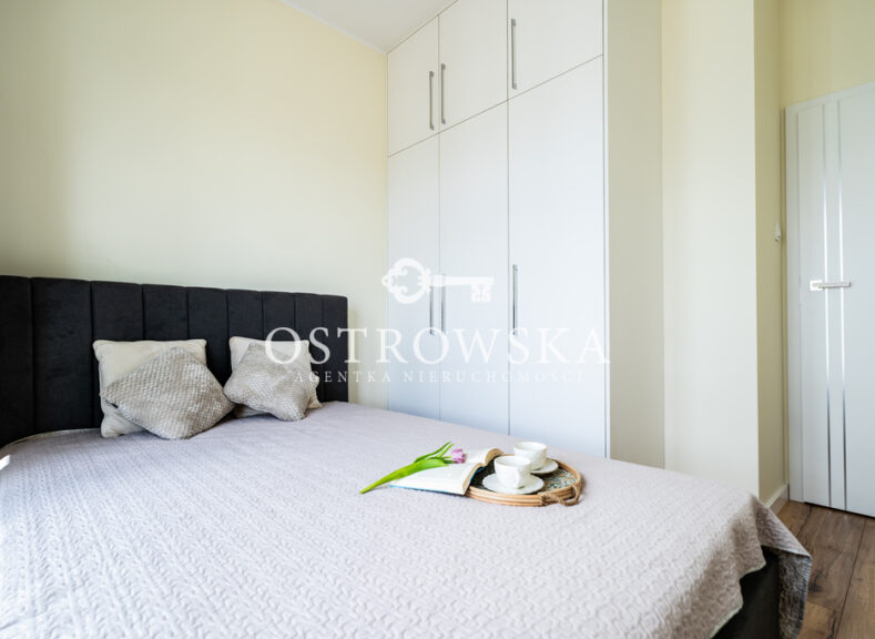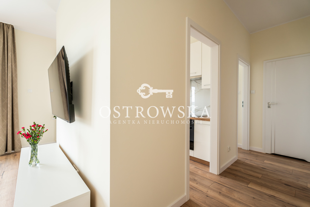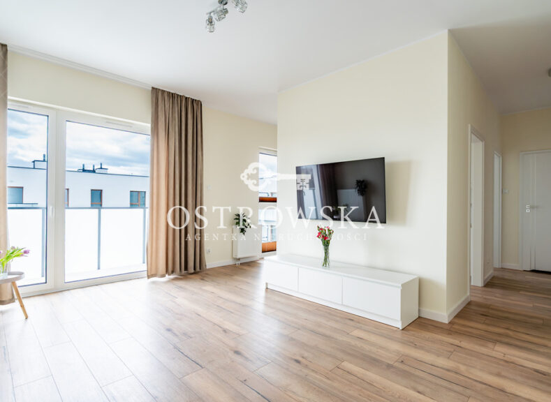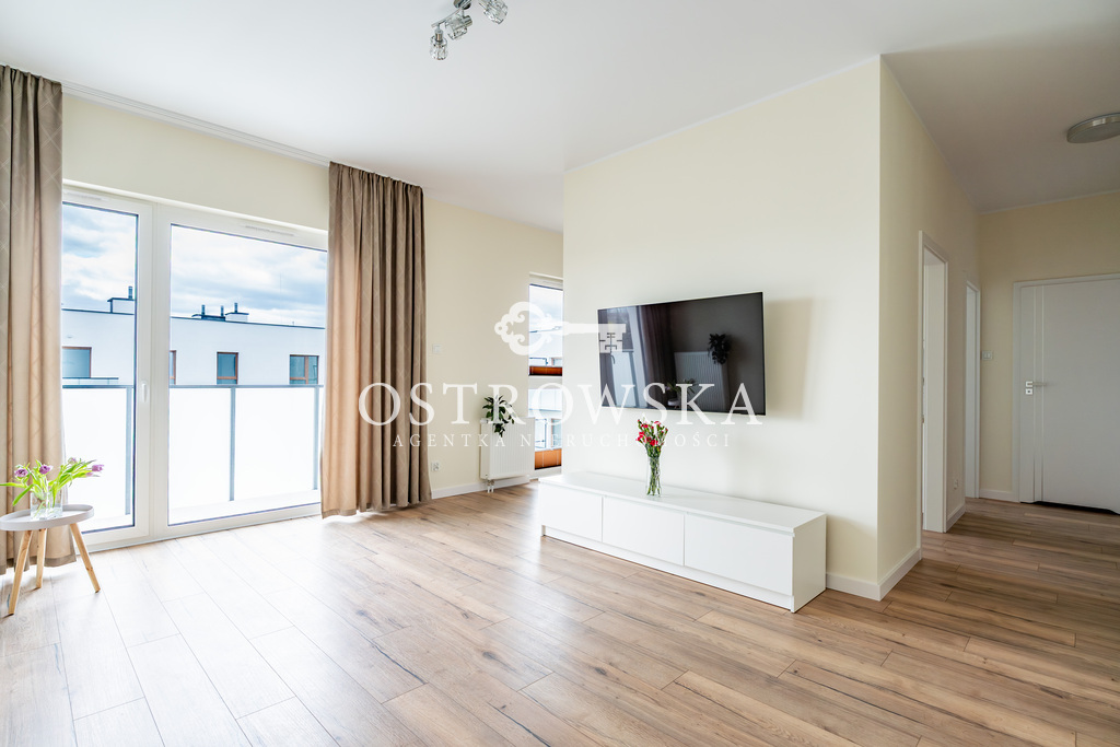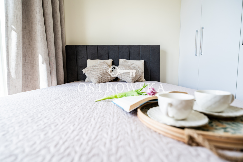 Lokal mieszkalny składa się z kuchni i salonu oddzielonych ścianką, sypialni, łazienki z wc oraz korytarza. Mieszkanie jest jednostronne, okna wychodzą zachód. Mieszkanie jest wykończone, nigdy nie było zamieszkane. Kuchnia została umeblowana, zawiera sprzęt AGD (płytę indukcyjną, okap, piekarnik, zmywarkę). Łazienka wyposażona jest w wc, umywalkę, wannę oraz nową pralkę. W przedpokoju oraz w sypialni znajdują się szafy w zabudowie. Mieszkanie jest słoneczne i gustownie urządzone. Do mieszkania przylega duży balkon.