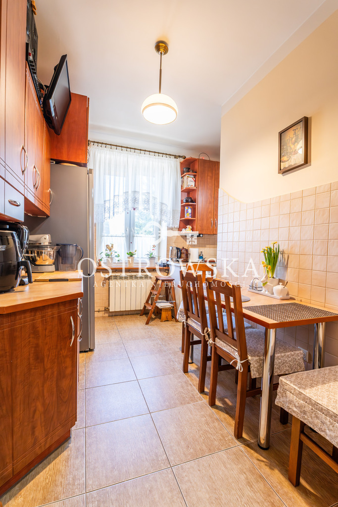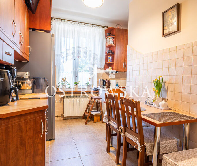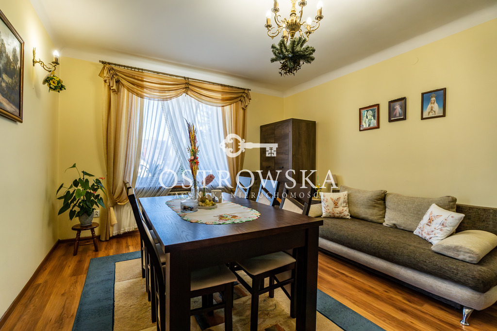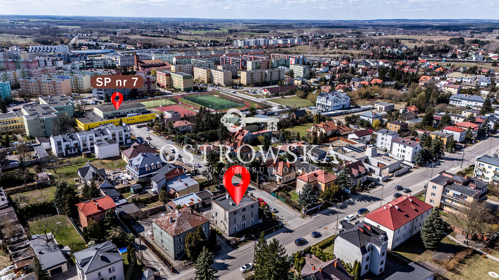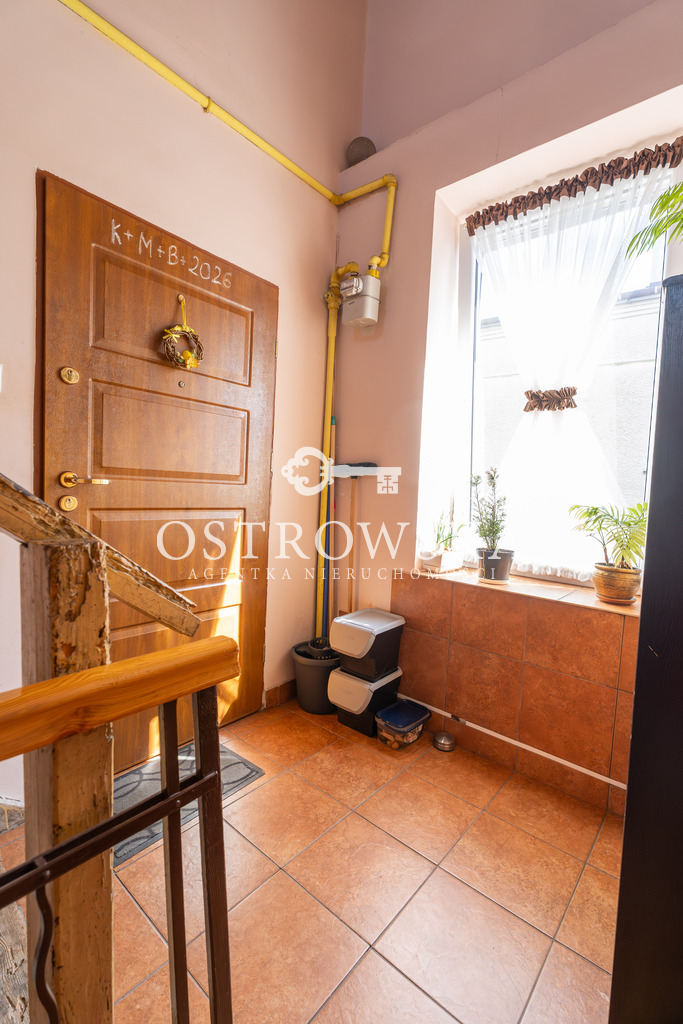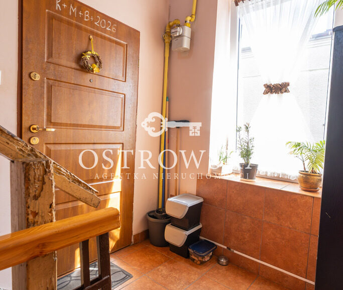 Mieszkanie znajduje się w przedwojennej, rodzinnej kamienicy wybudowanej ok. 1935 r. Wewnątrz znajdują się 4 odrębne mieszkania, wspólna klatka schodowa oraz wspólny strych. Budynek wybudowano z czerwonej cegły, a jego mury na parterze mają grubość ok. 55 cm. Nie został on ocieplony, ponieważ grube mury dobrze izolują ciepło. Do kuchni jest doprowadzony gaz z sieci. Obok kamienicy znajduje się budynek gospodarczy, który został podzielony na garaże i komórki. Dojazd do niego jest utwardzony kostką. Wokół kamienicy mamy zagospodarowany teren z zielenią i licznymi nasadzeniami drzew i krzewów. Teren całej nieruchomości jest ogrodzony. Wraz z mieszkaniem i pomieszczeniami przynależnymi, kupujący nabywa również udział w gruncie.